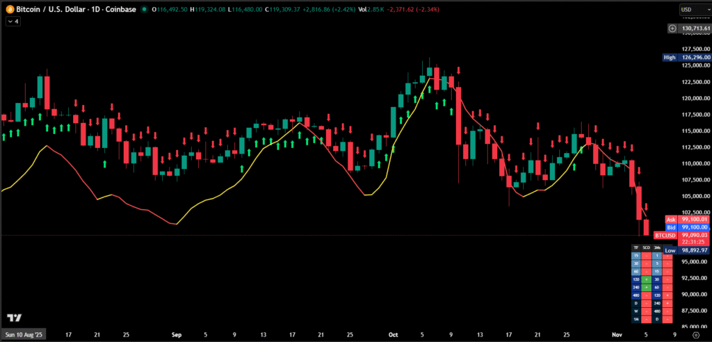 ⦁ Colored line (SCO) reflects the degree of structural agreement across multiple timeframes.